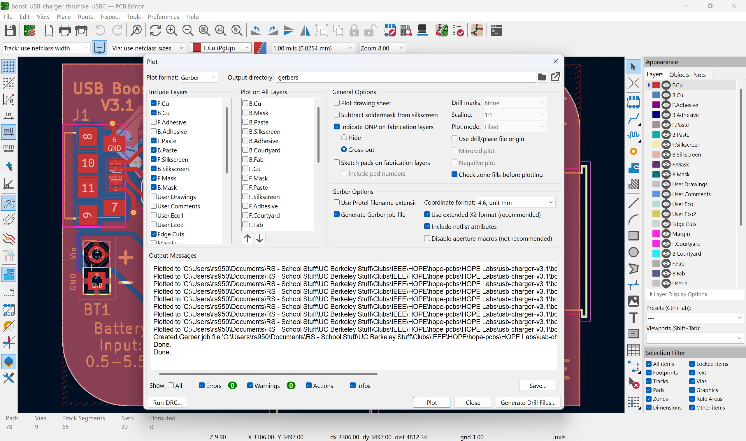 - Run a Design For Manufacturing (DFM) check and show your design passes